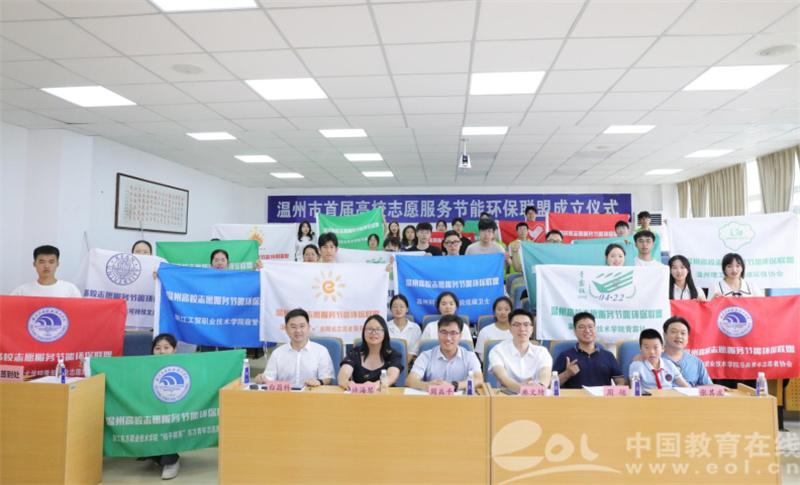 中国教育在线浙江站讯 (编辑 占尘雪 通讯员 温大萱) 7月24日上午,来自温州各高校志愿者组织的志愿者代表汇聚在温州大学,共同见证温州市高校志愿服务节能环保联盟的成立,并开展“绿色学校创建”主题宣讲。