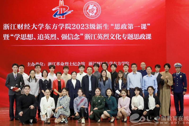 中国教育在线浙江站讯(编辑 邱彬鑫 通讯员 黄曾帆)为进一步推进“大思政课”建设,用红色信念引领当代青年勇做习近平新时代中国特色社会主义思想的信仰者和实践者,10月10日,由浙江革命烈士纪念馆、浙江财经大学东方学院主办的“学思想、追英烈、强信念”浙江英烈文化专题思政课在影剧院开讲,师生代表近千人参加活动。