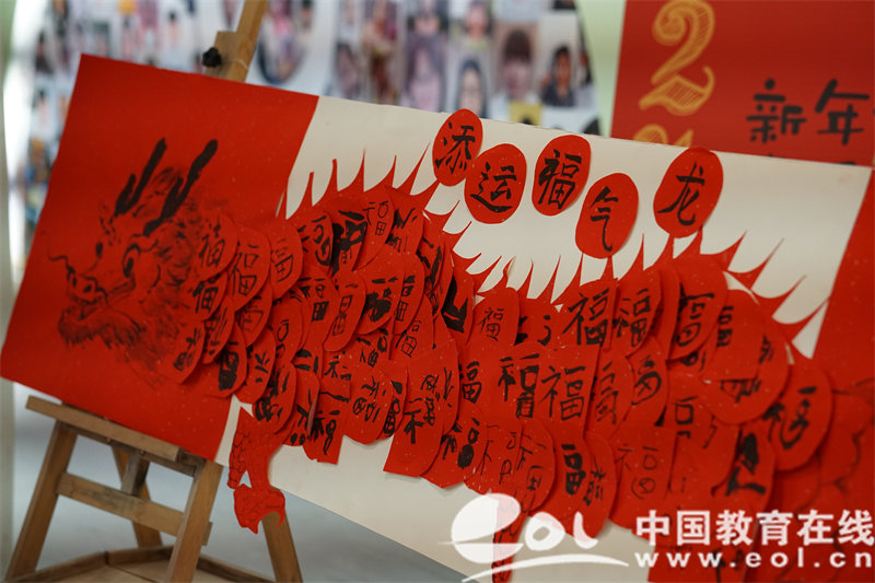 幼儿园准备了5条富有特色的龙,用笑脸拼成的“快乐马卡龙”、用彩色手掌印出的“聪慧巧手龙”、用毛笔书写而成的“添运福气龙”、用彩色折扇拼出的“团结友善龙”和带着希望和期待的“红火热爱龙”,等着小朋友一起来为长龙绘制龙鳞。希望这谢满载童心的祥龙带着小锦鲤们在龙年扶摇直上,向上生长。